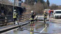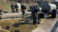 Nach der Bergung stand die Reinigung der Fahrbahn im Mittelpunkt. Mit zwei Tanklöschfahrzeugen sowie einer Zubringerleitung von einem nahegelegenen Hydranten wurde die stark verschmutzte Straße gründlich gereinigt. Die ausgetretene Gülle und der Schlamm wurden aufgenommen und die Fahrbahn anschließend gespült, sodass die Landesstraße nach Abschluss der Arbeiten wieder für den Verkehr freigegeben werden konnte.