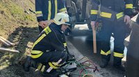 Die erste Maßnahme der Feuerwehr war die Betreuung und Kontrolle des Lenkers, der unverletzt geblieben war und bereits selbst versuchte, das weitere Auslaufen der Gülle zu verhindern. Parallel dazu wurde umgehend verhindert, dass weitere Gülle in die Kanalisation und damit in Richtung Ramingbach gelangen konnte. Mittels Schachtabdeckungen wurden die Kanaleinläufe gesichert.