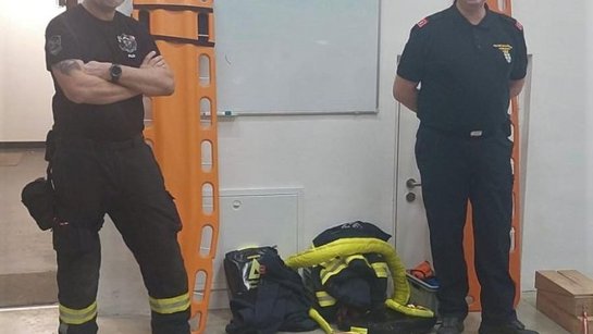 Auch wurde das Umlegen von Personen beübt, die durch Schmerzen an der Wirbelsäule sich nicht mehr bewegen können.
